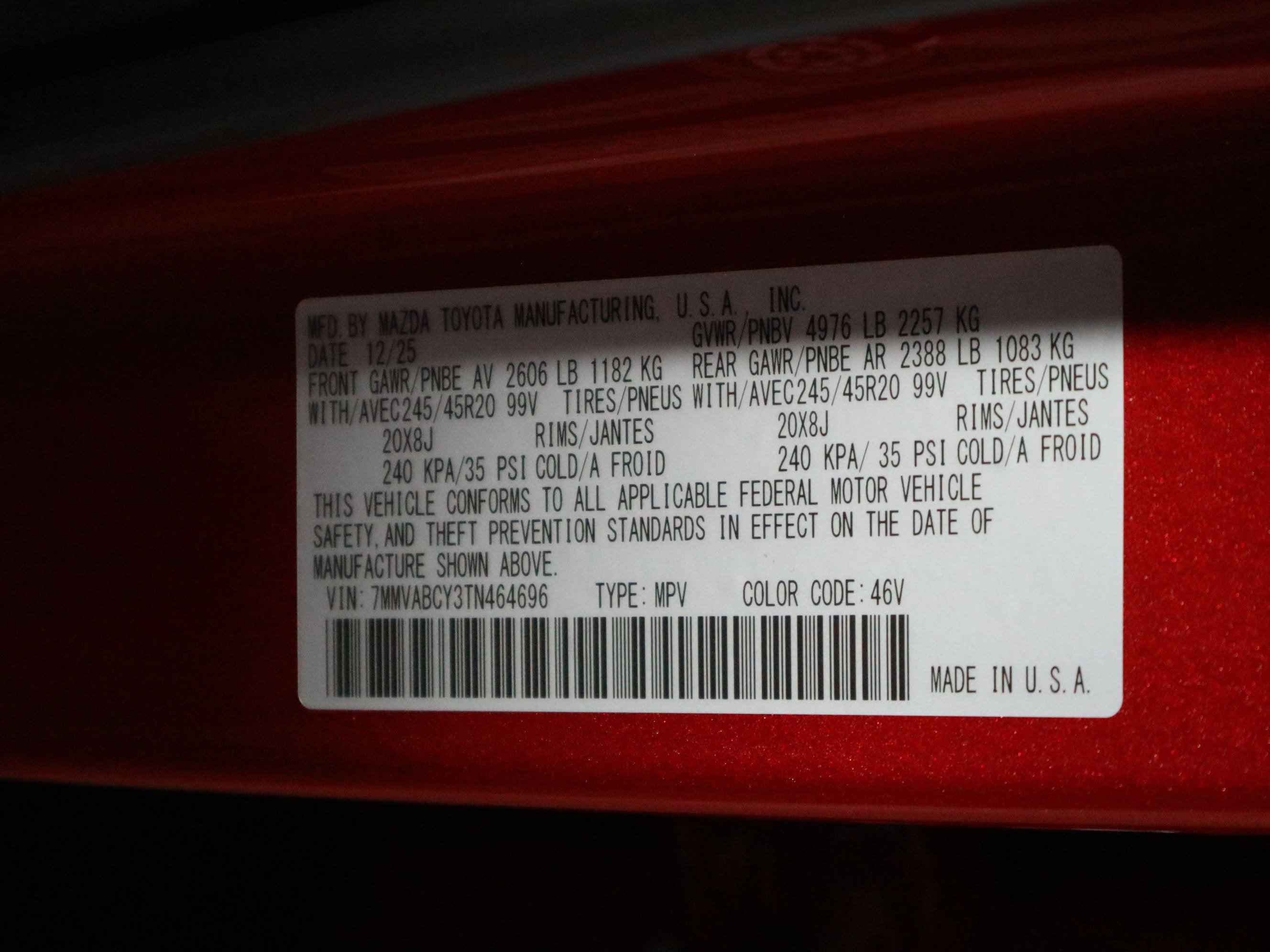 - Front Tire Size: P245/45HR20