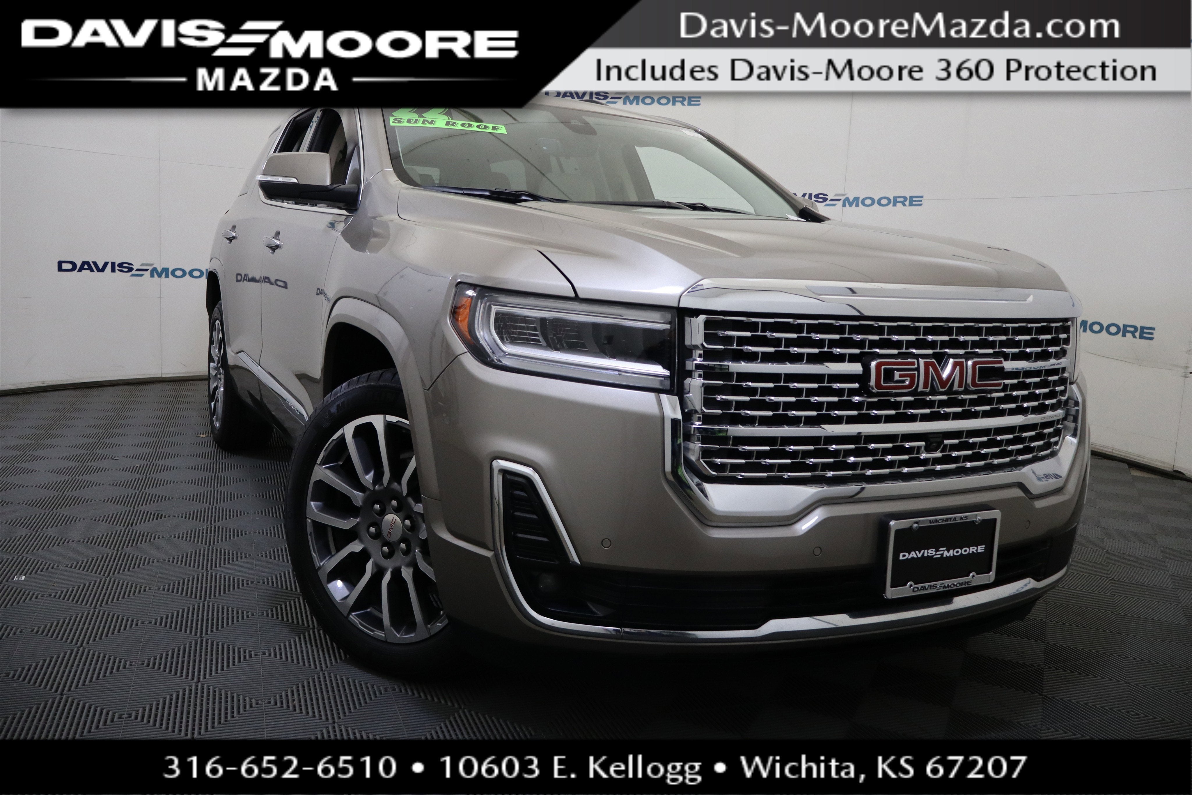 Davis Moore Chevrolet has been Kansas' #1 Chevy Dealership for multiple years and is proud to present this 2022 GMC Acadia Denali. All of our Pre-Owned vehicles come with the exclusive Davis-Moore 360 Coverage. This coverage includes: two free oil changes, no charge check engine light diagnostic, 171-point comprehensive inspection quality guarantee with up to a 90 day or 4000 mile limited warranty and a 3 Day vehicle return policy. - See dealer or website for more detail. https://www.davis-moore.com/davis-moore-360-guarantee.html. FWD, Dark Galvanized/Light Shale Leather.