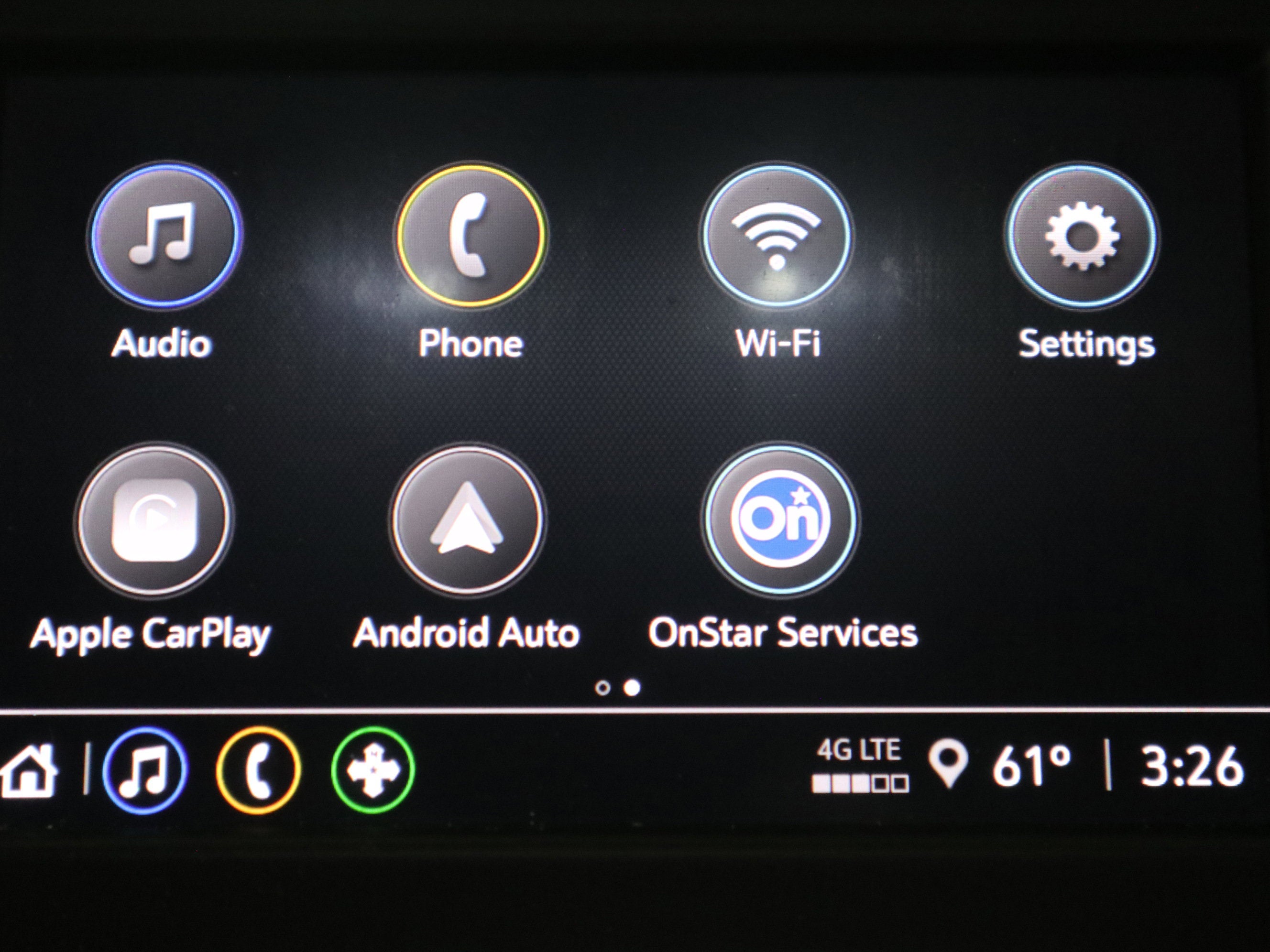 - Audio system, Chevrolet Infotainment 3 system, 7" diagonal color touchscreen, AM/FM stereo. Additional features for compatible phones include: Bluetooth® audio streaming for 2 active devices, voice command pass-through to phone, Apple CarPlay and Android Auto capable.