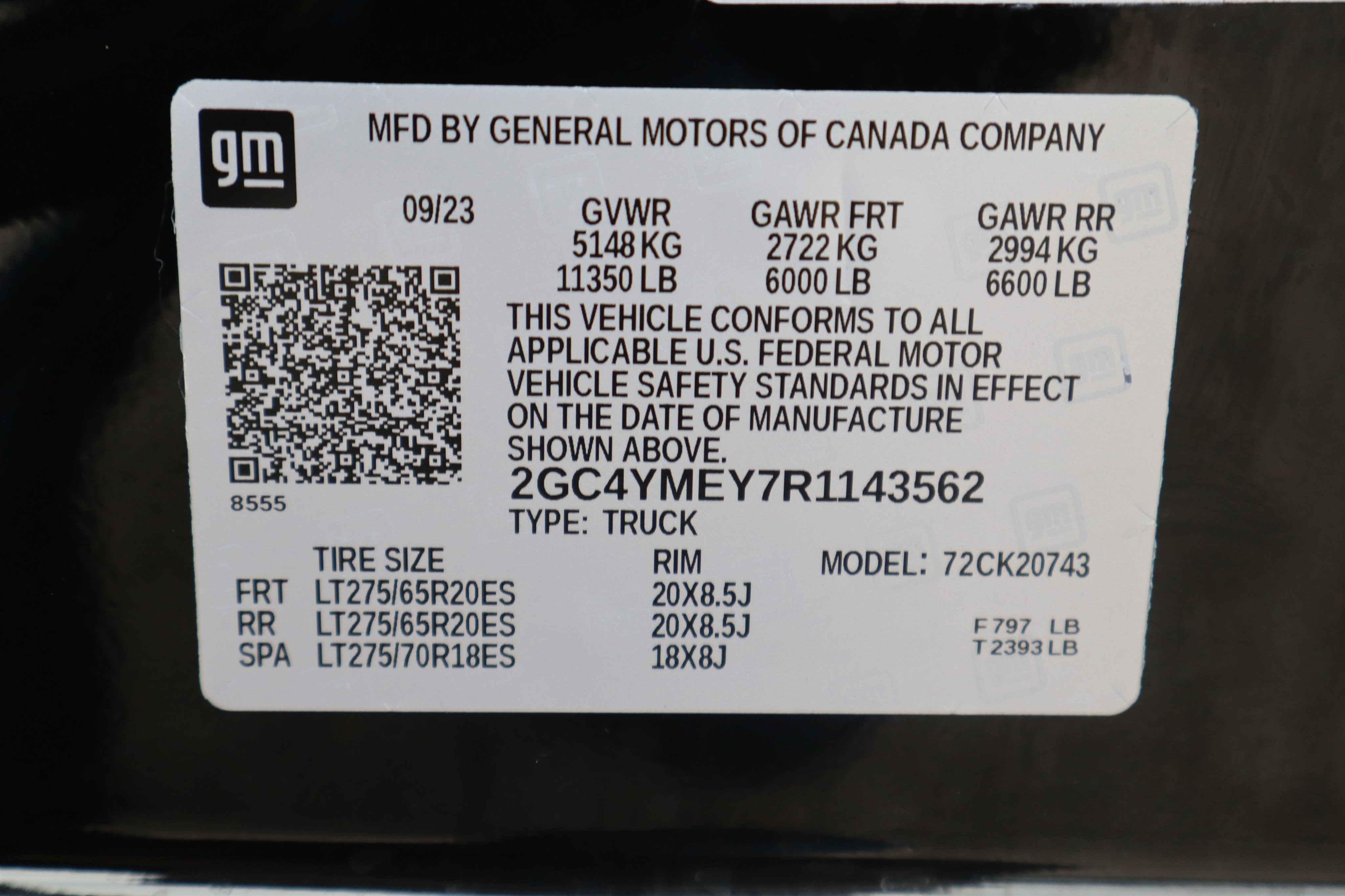 - Tires, LT275/65R20 all-terrain, blackwall