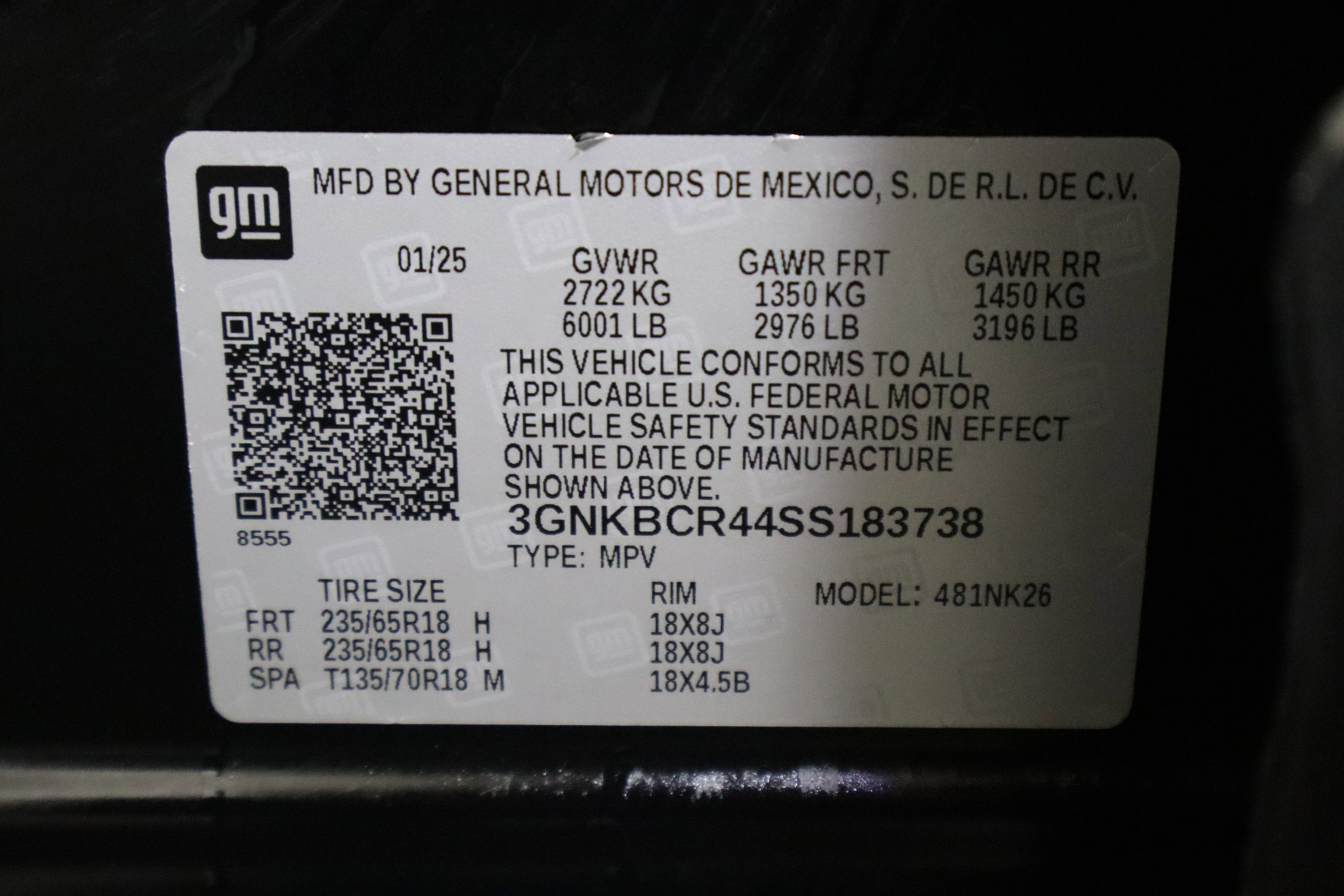 - Tires, P235/65R18 all-season blackwall