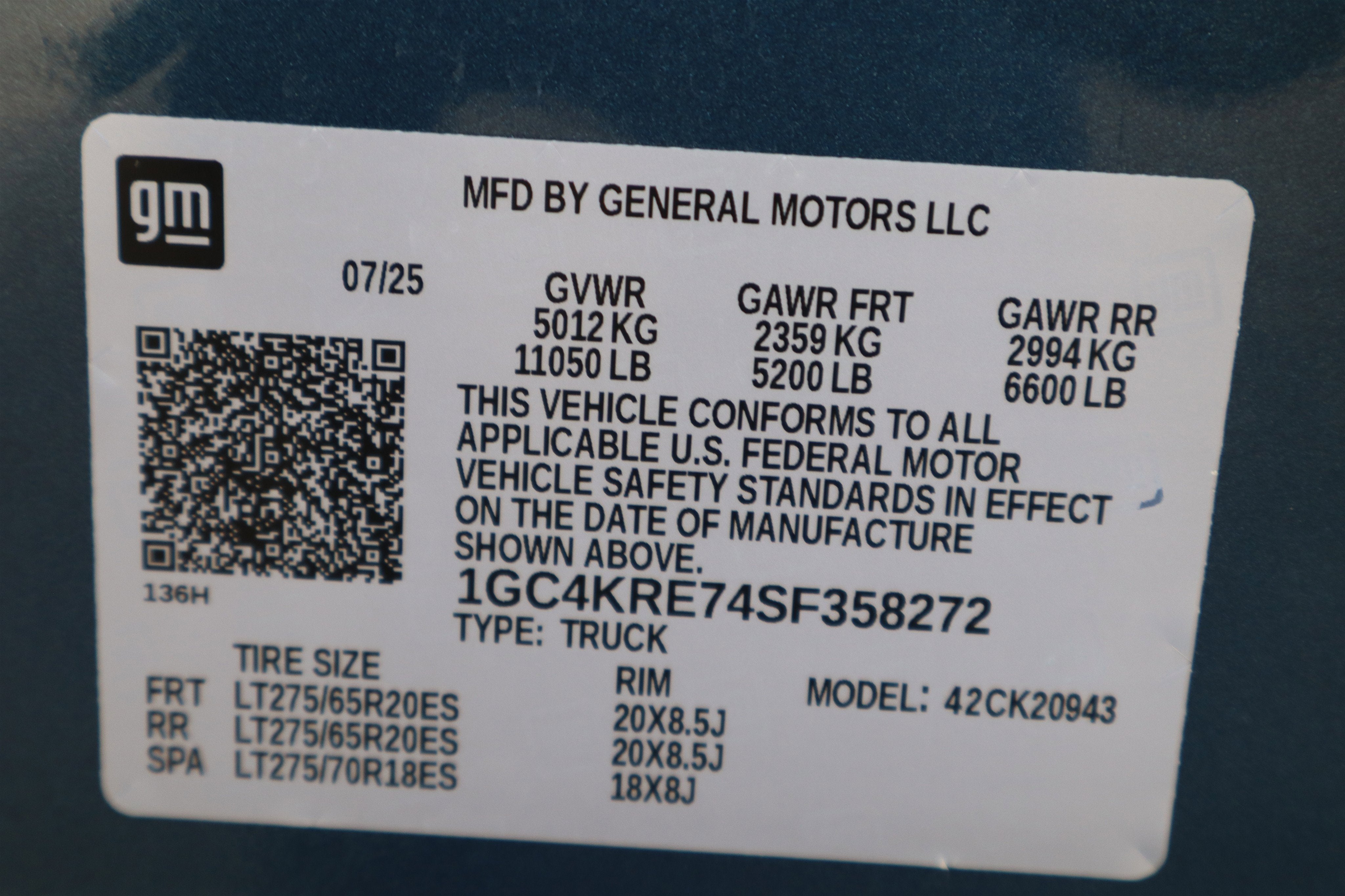 - Front Tire Size: LT275/65R20